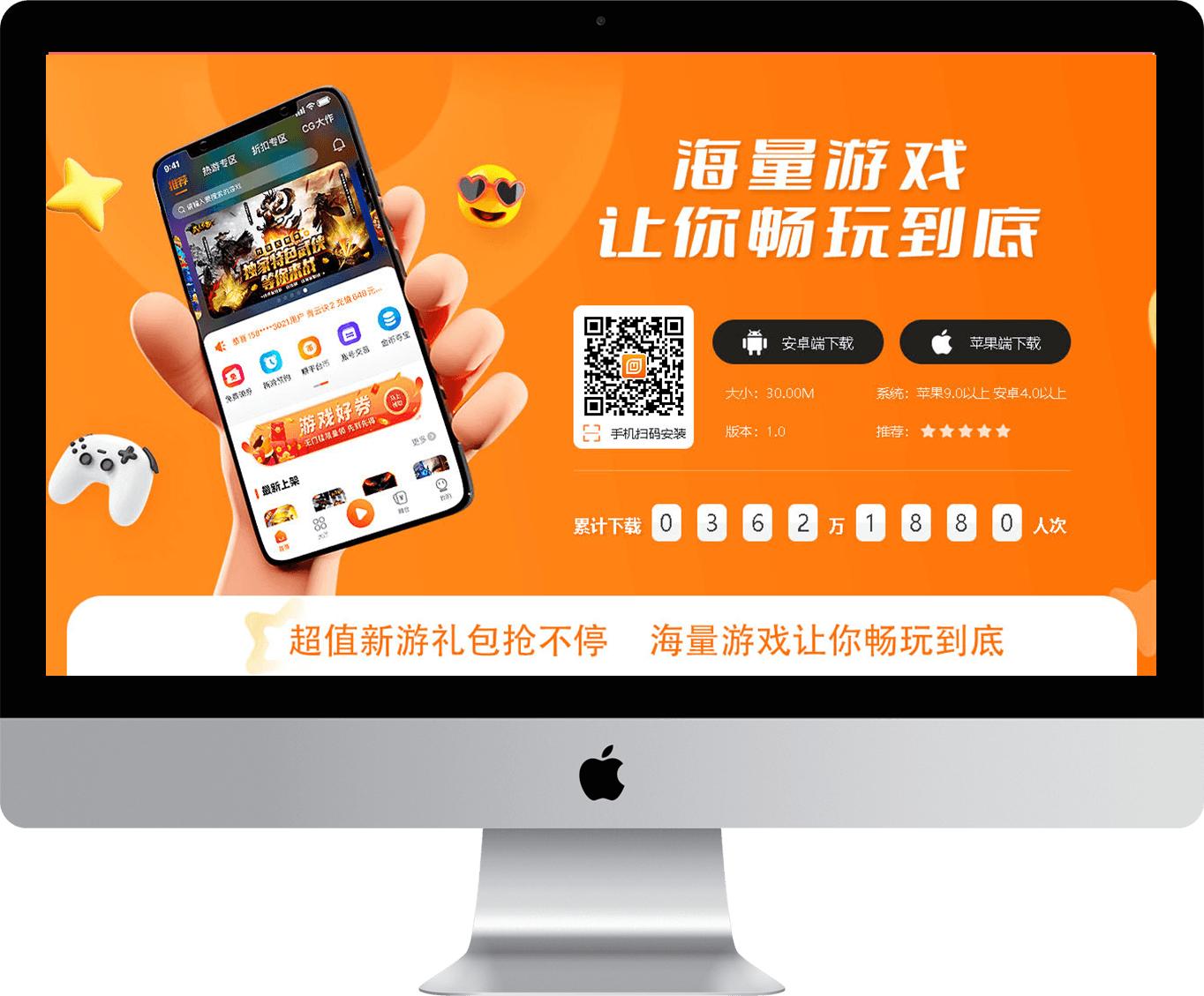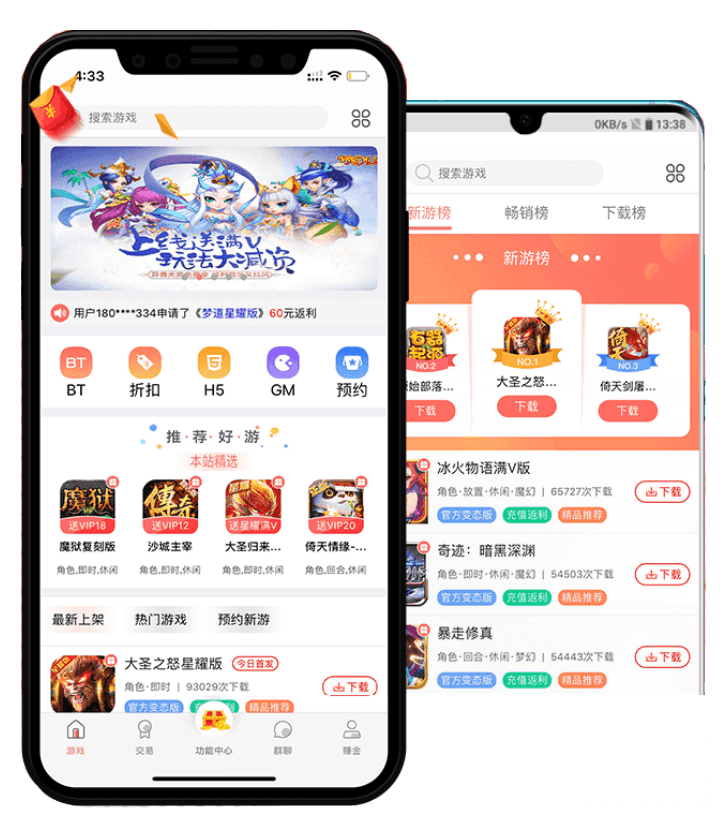 支持自动判断手机类型,安卓苹果不同手机访客展示不同的类型的游戏游戏下载、游戏礼包领取、游戏攻略查询、平台币充值等移动娱乐游戏服务。